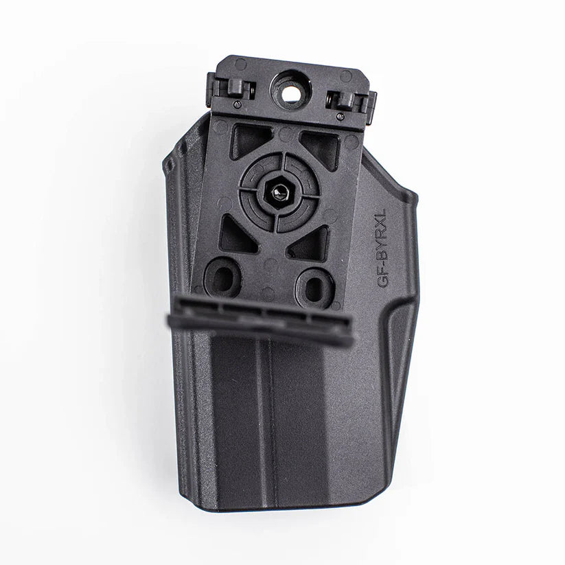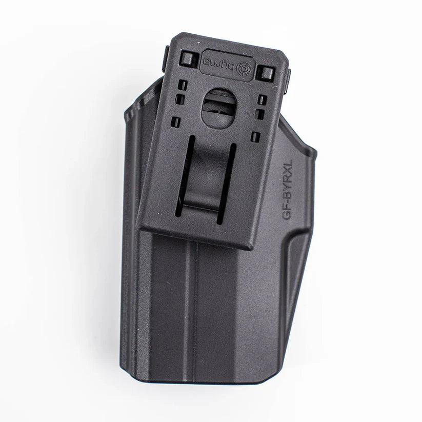 The Level II Holster Belt Clip Adapter is an add-on that can be used to convert the Byrna Level II holster from the standard paddle grip to secure, belt attached holster.