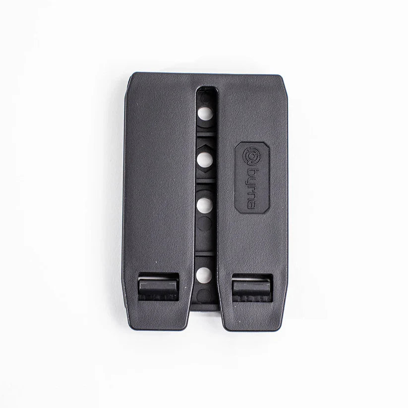 The Level II Holster MOLLE Adapter is an add-on that can be used to convert the Byrna Level II holster from the standard paddle grip to a MOLLE compatible connector.